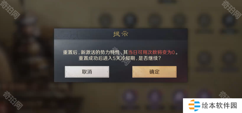 势力加点可以进行重置,不过重置成功后会进入5天的CD(冷却期)