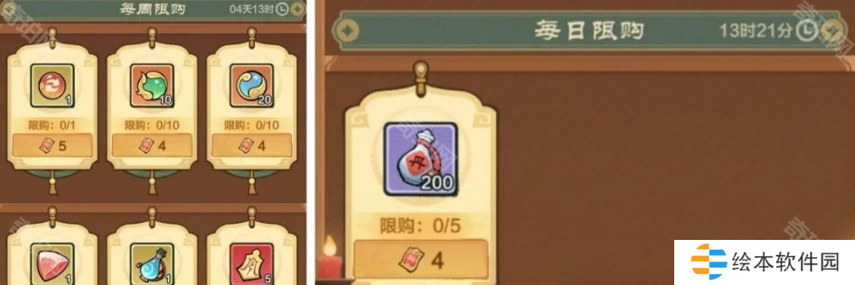 最后咱们来看一下秘宝商店,主要利用玩法获得的丹火契进行兑换,分为每日限购+每周限购,里面的道具根据自身需求兑换就行,比如灵符篆、变幻石头……