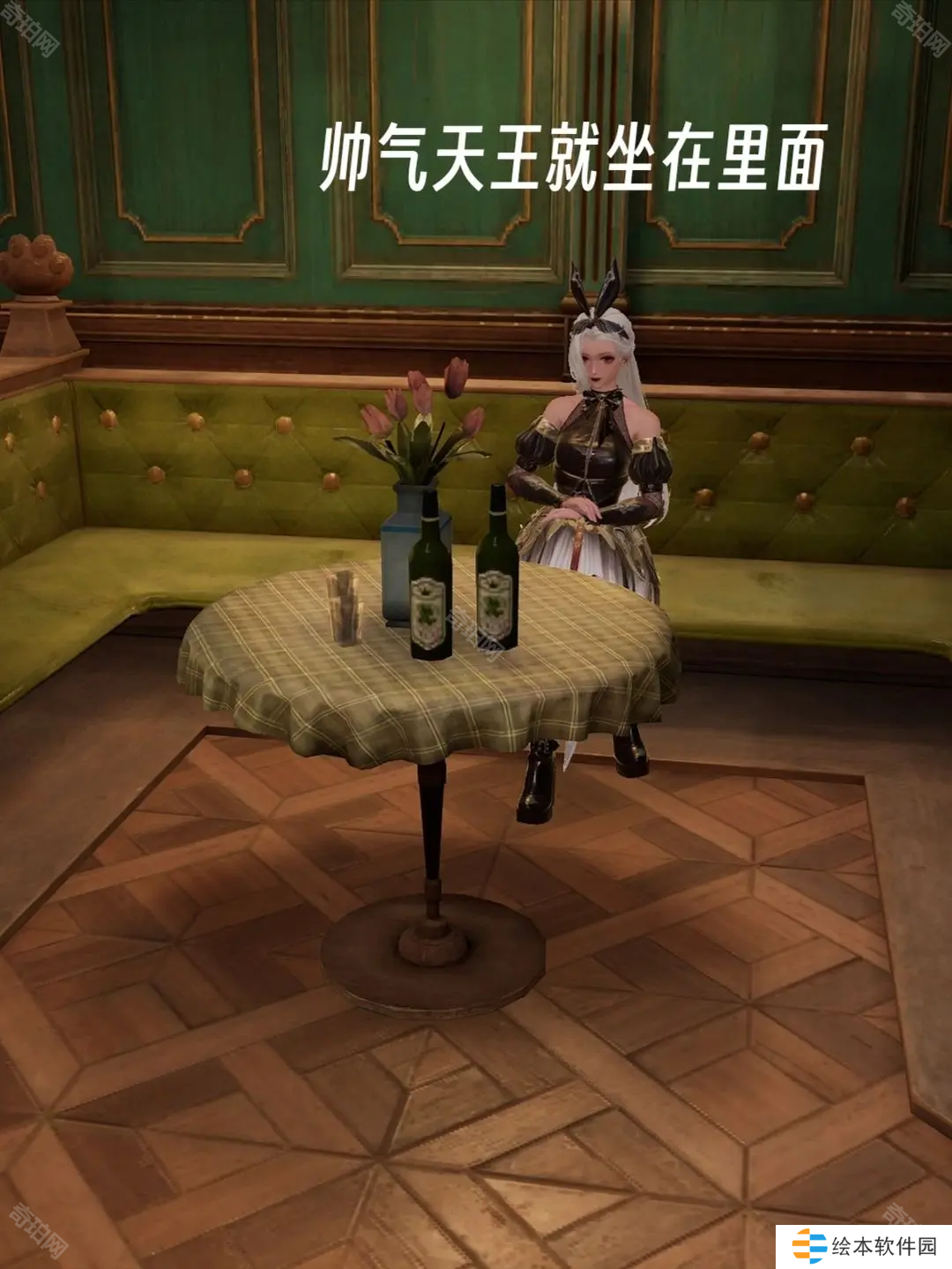 在围兜狸猫欢笑俱乐部内,我们可以发现帅气天王坐在绿色沙发上