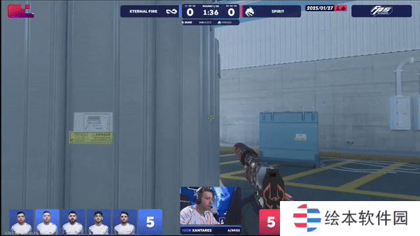 攻防转换。永恒之火从铁板进攻B区,包点CT没能抗住攻势,绕后的XANTARES也偷到一个背身,下半场手枪局Eternal Fire拿下。