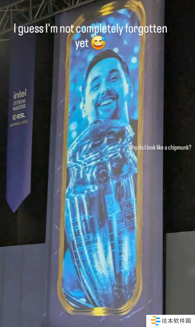 日前HooXi在社交媒体上分享了一张今年挂在IEM 卡托维兹站比赛室里的个人海报。
