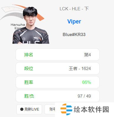 直播吧02月06日讯 近日韩服排位榜单更新,HLE下路选手Viper以一波十连胜直接冲到第四名,并且胜率高达66.4%。