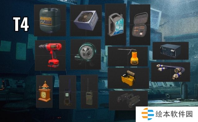 专用电池组、液压扩张器、隔音棉、UPS电源、燃料桶、CPU、GPU、芯片处理器、内存条、专用电路板、缓降器、香水、示波器、紫外线灯