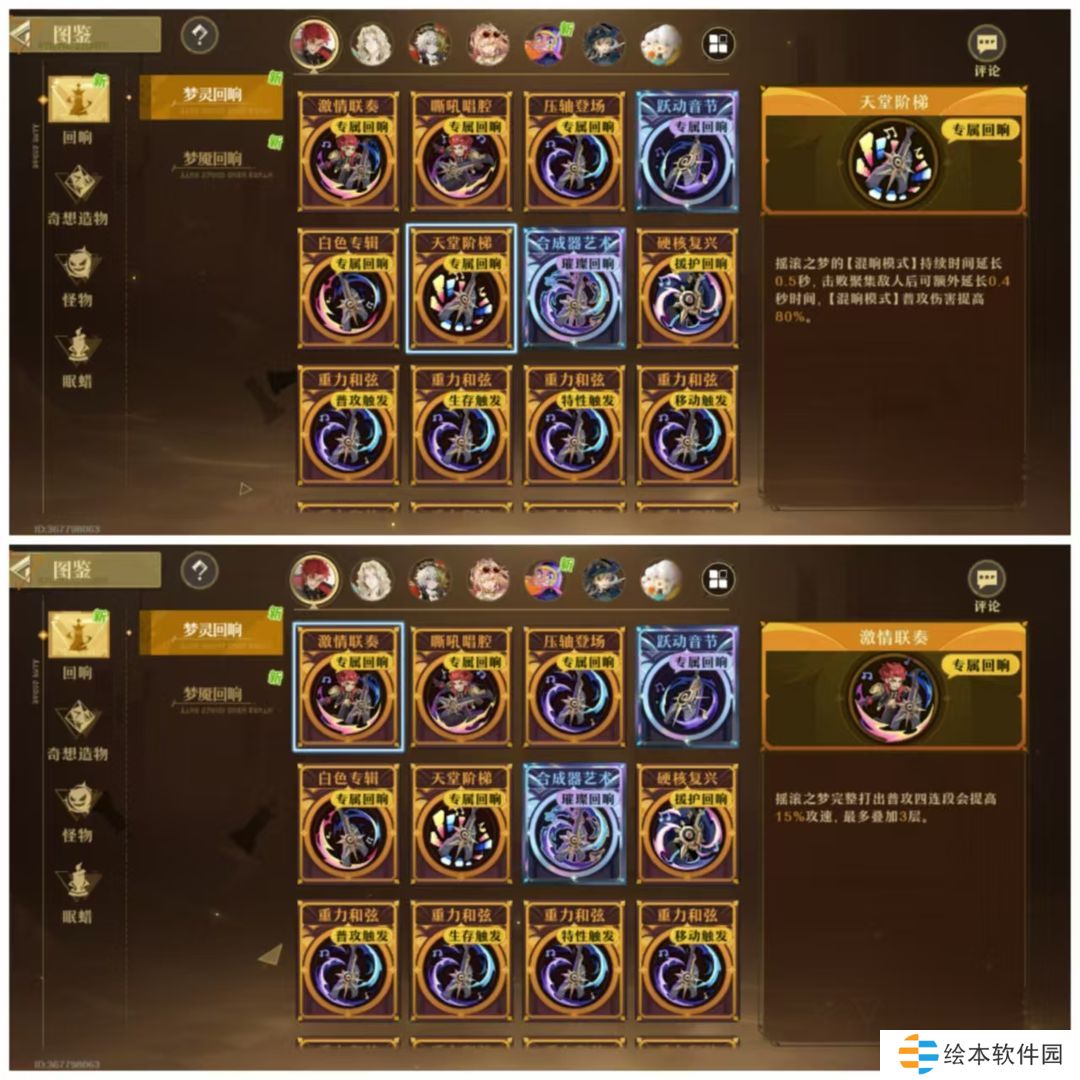 换人触发回响的伤害提高:指的是图二提高换人释放八次音波的伤害,如果你没选这个梦灵回响的话是不生效的。而且只对佩戴者生效。