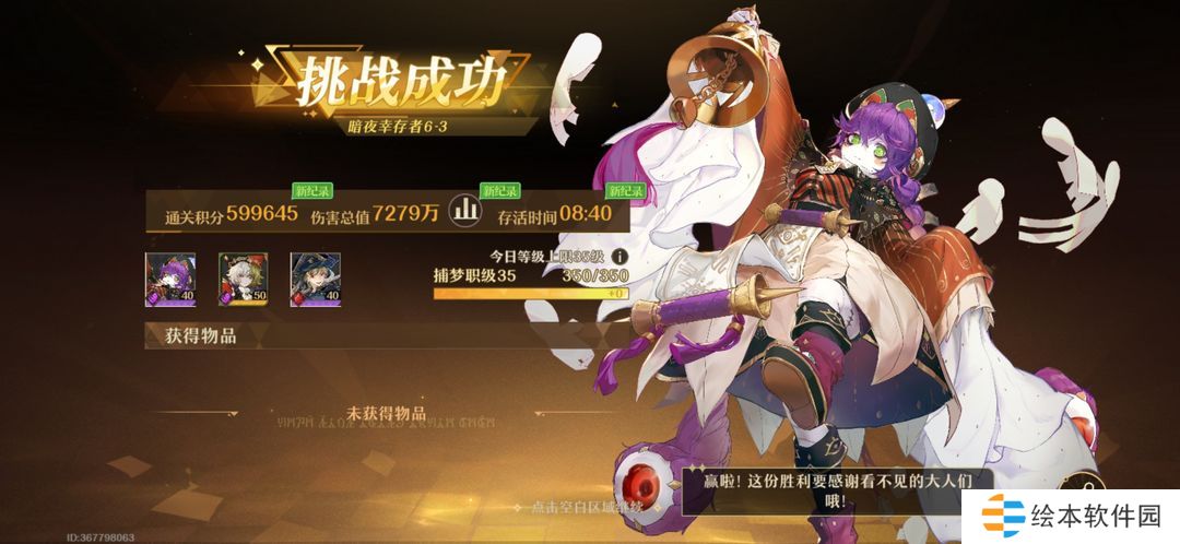 打暗夜幸存者击败回响是所有角色都是必备的,所以下面就不把这个击败回响写进去了。
