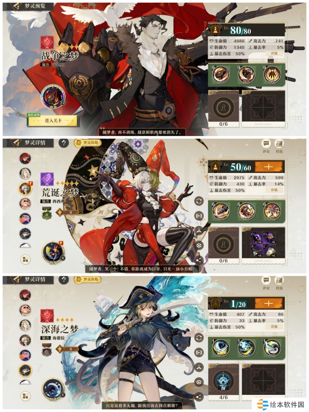 灵装:摇滚之梦带蒸汽动力、暴击率。审判之梦带