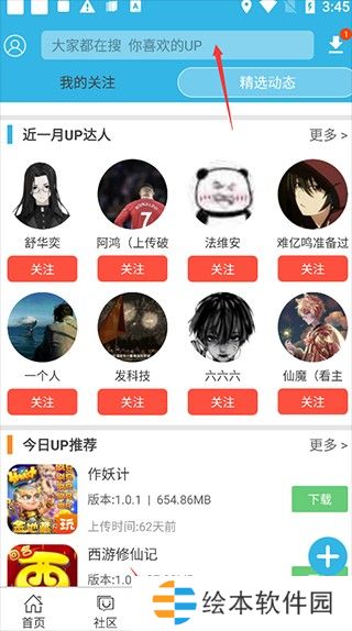4、如果是想要找到自己想要的游戏和应用的话,那必须也是点击“up”功能按钮;