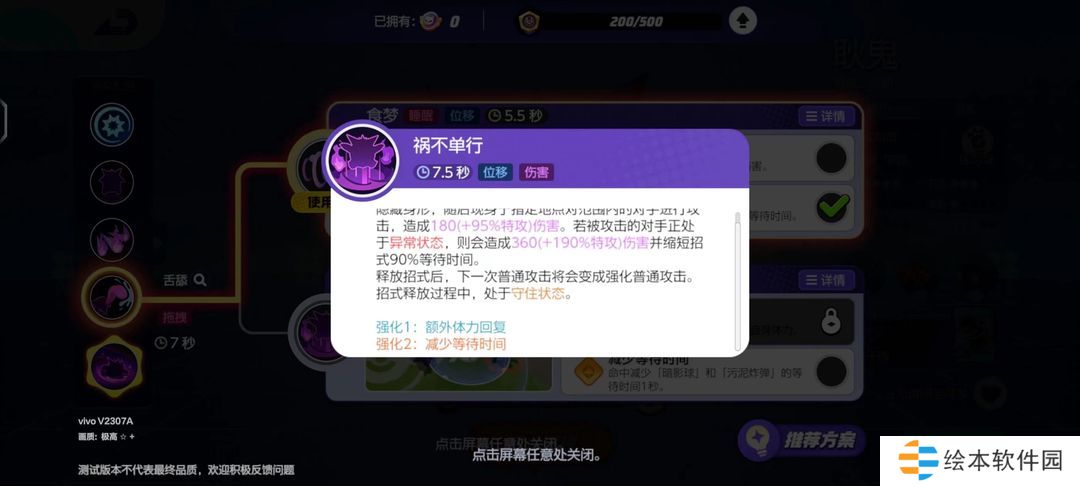 耿鬼的另一套技能祸不单行和污泥炸弹是一套实战中操作上线很高的技能,可能不适合新手不过值得你去尝试的一套技能。 污泥炸弹给目标挂上中毒负面效果,分支建议延长中毒时间。祸不单行攻击到带有负面效果的目标可以刷新技能cd,且技能释放过程中是守住状态可以规避许多技能,在实战中十分有效,分支建议减少等待时间。
