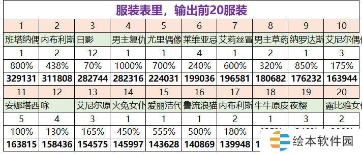 在满足了c位的输出装备后,剩下的高评分服装都给后台角色,后台角色则优先满足多服装的角色,像女主,格雷,莎拉这些多服装角色,如果没上场的话,就把高评分的装备给他们。