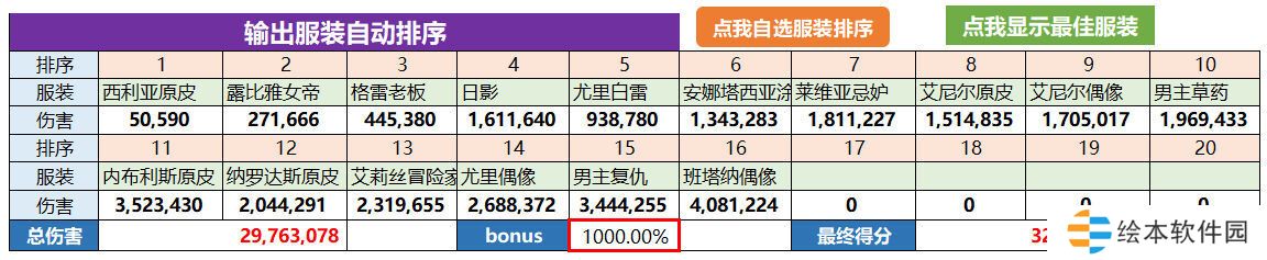 输入自己服装的倍率,自动显示输出前20的服装。
