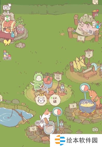 每个猫的技能不一样星级也不同,技能对应加成,如切卷心菜,洋葱胡萝卜等等,选择对应的岗位就有加成,加成按星级高低递增,选择正确则如p1带有星级标识,猫咪的加成也对应好感p2喂鱼(每天有六次机会钓鱼)蛋糕增加。