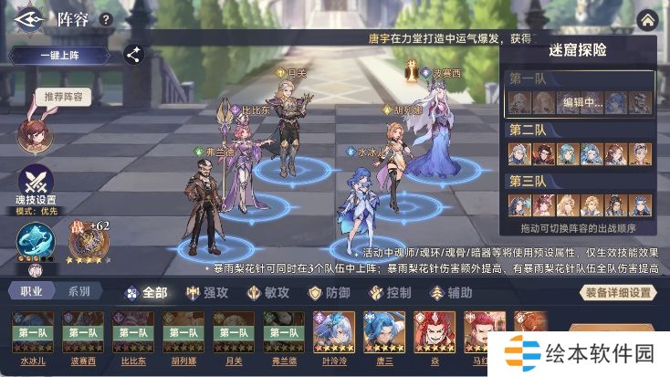 3、碰到有一个队伍打不过的情况,可以看看战报,把能打过的并且回合数少的那个队伍拆开,去支援打不过的队伍,最极限的情况就是三队都是19或者20回合打过。参考阵容如下: