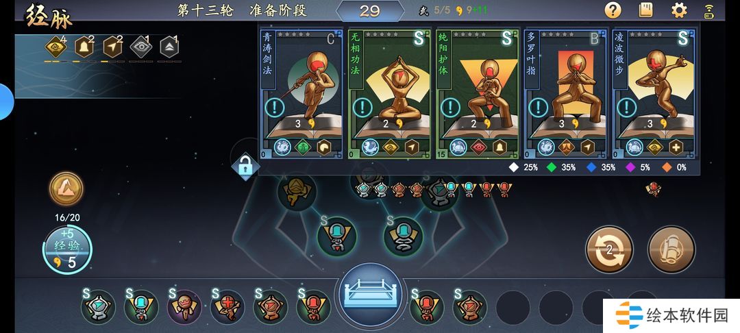 @经脉等级上去,旁边牌堆刷不同品质卡牌(白绿蓝紫金)的概率也改变