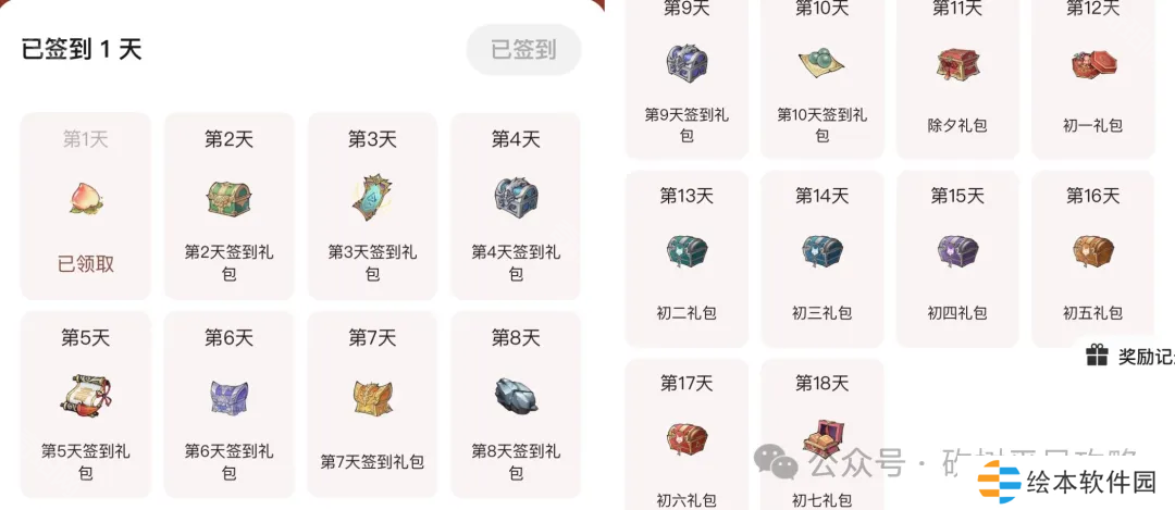 ①签到奖励: