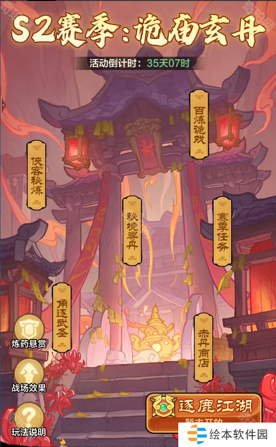 玩法:百炼诡戏+秘境寻丹+侠客秘炼+角逐武圣+赛季任务+战场效果