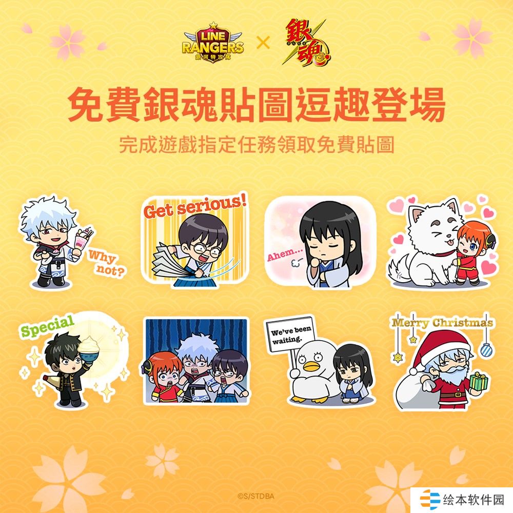 为纪念与电视动画《银魂》合作,于活动期间内,只要通过 15 次合作特殊关卡 1 即可获得独家限定 LINE 贴图(共 8 张)。详细资讯请至游戏公告确认。
