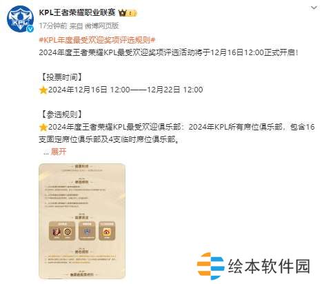2024年度王者荣耀KPL最受欢迎奖项评选活动将于12月16日12:00正式开启!