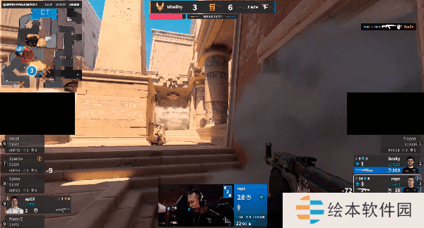 下半场Vitality来到进攻方,手枪局五人集合从外场展开进攻,最后形成三楼夹A阵型,一波冲击轻松拿下胜利。次回合FaZe选择ECO。