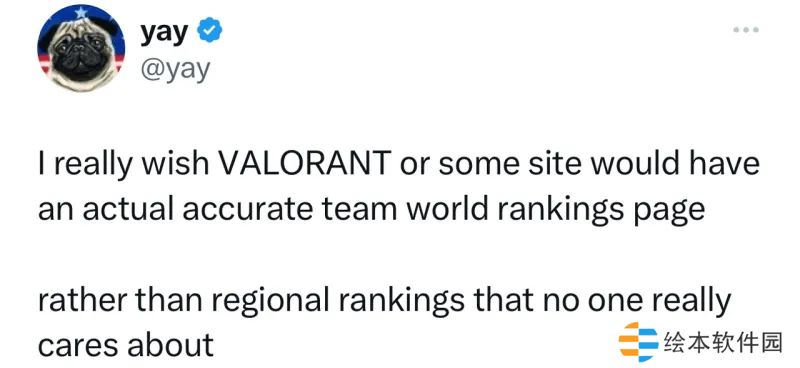 无畏契约明星选手yay发文表示想要一个准确的队伍世界排名。原文大意如下: