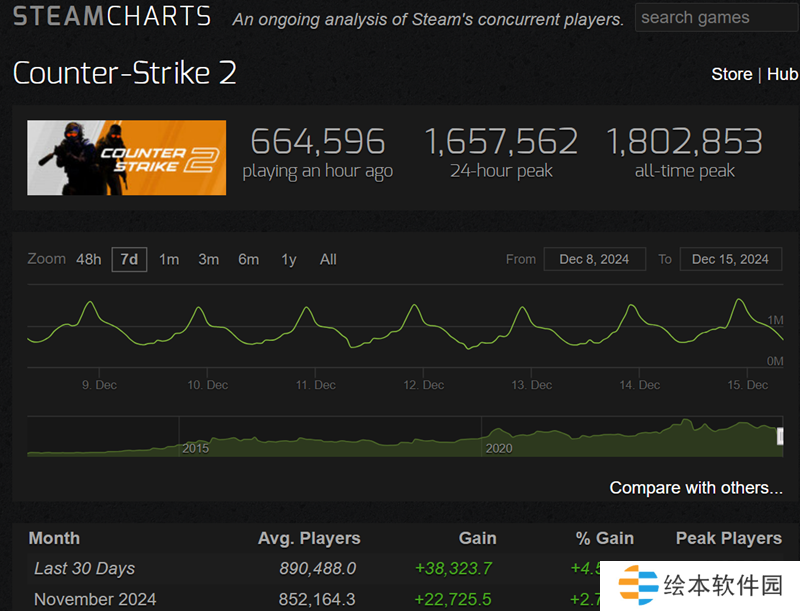 在昨天上海Major半决赛期间,CS在线人数也继续增长,峰值在线人数达到了1657562人,而这也是一年以来CS在线人数的新高。