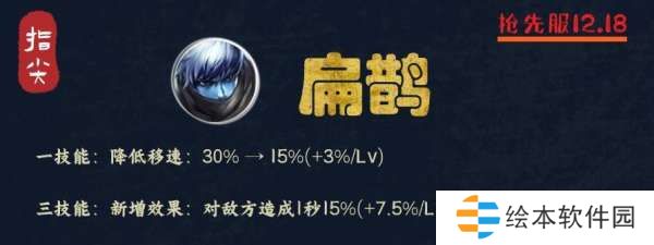 重点在于加速效果,1技能使用后对范围内队友进行加速10%,调整后变成了5%-10%,但新增了一个机制,那就是对自身翻倍。