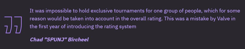 “为某一特定群体举办专属赛事,而且出于某些原因这些赛事成绩还会被纳入总排名,这是行不通的。这是V社在引入排名系统第一年所犯的错误。”
