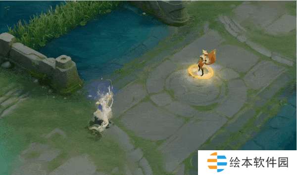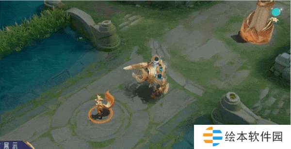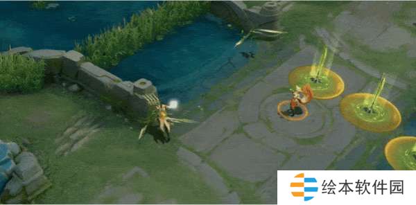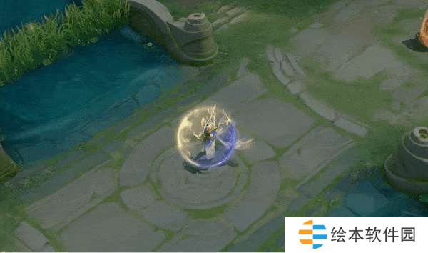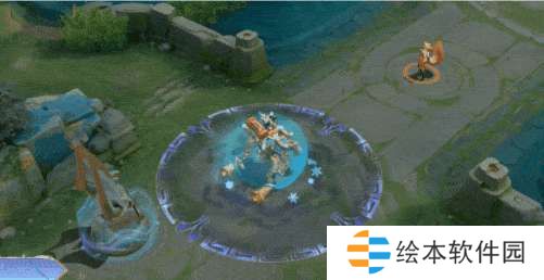 技能特效以青黄色为主,标枪在地面生成茶叶的图案,由于是勇者皮肤因此特效比较简单,不过打击感还是蛮利落的。