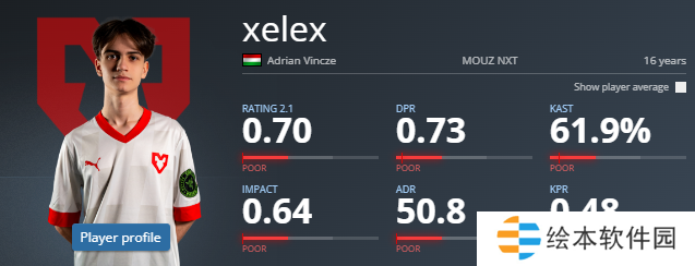 spooke20-22-274.411.04从这两场赛事的数据上来看,初出茅庐的xelex似乎还未能在比赛中找到适合自己的发力方式。因此当前他在HLTV的数据面板并不华丽。