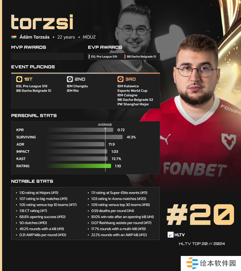 HLTV 2024年度最佳选手TOP20:torzsi