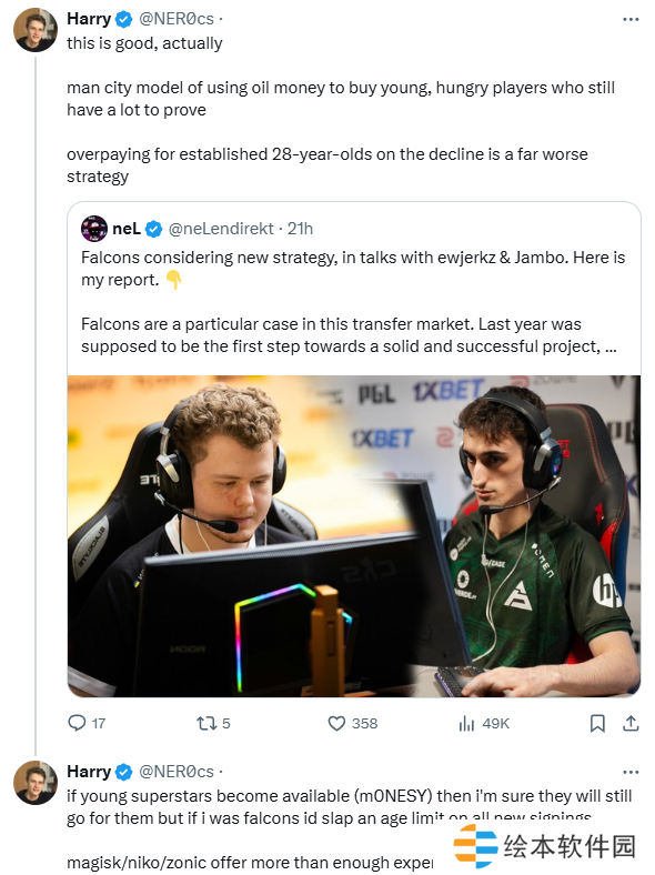 HLTV编辑:Falcons的策略像曼城,买入年轻有冲劲的选手
