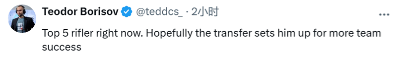 Tedd:他现在是Top5步枪手。希望转会能助他在赛事中取得更多佳绩。