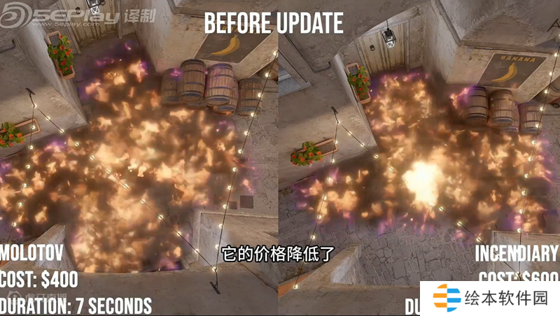 今年五月底的更新中,开发人员将安装炸弹但被拆除时进攻方队伍奖励从800美元降至600美元,以减少第一回合对后续回合的影响。同时将M4A4的价格从3100美元降至3000美元。防守方燃烧弹的价格从600美元降至500美元,但缩短了燃烧持续时间、缩小了火焰蔓延的覆盖面积。