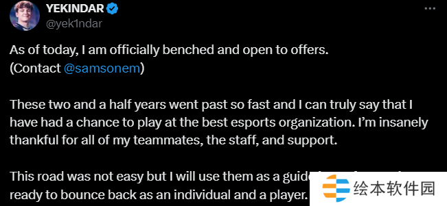 今日凌晨,YEKINDAR发文宣布被下放,开始考虑转会报价。