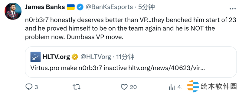 “说实话,n0rb3r7理应得到比VP更好的待遇……2023年初他们就把他下放替补席,后来他又证明了自己能重回战队,而现在问题根本不在他身上。VP这步棋真的太蠢了。 ”