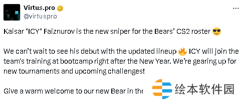 我们迫不及待地想要看到他在新阵容中的首秀, ICY将在新年后正式加入团队,并在训练基地中与队友们一起集训。我们正在为新的比赛和即将到来的挑战做好准备!”
