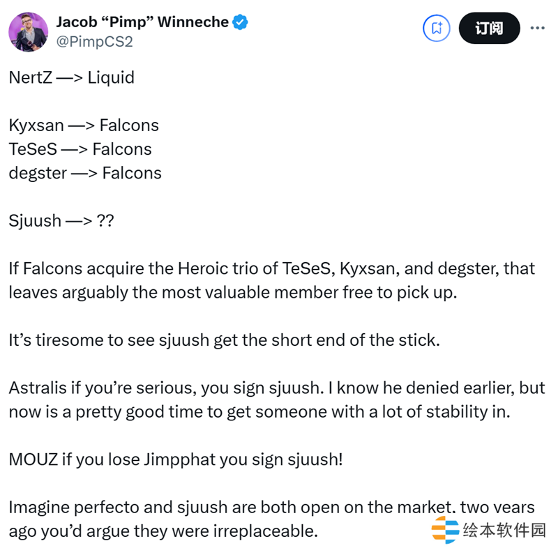 Astralis,如果你们是认真的,就签下sjuush。我知道他之前拒绝过你们,但现在是引入一名极具稳定性选手的绝佳时机。