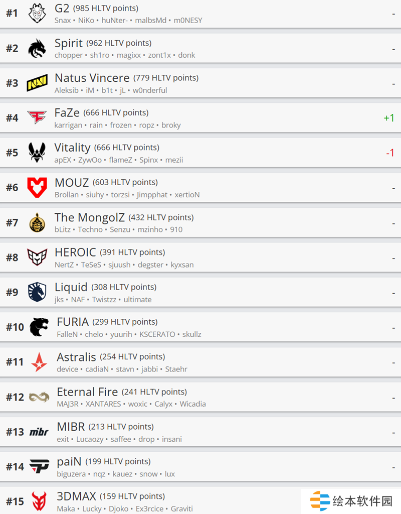 HLTV本周世界排名:FaZe进入前四 Vitality跌至第五