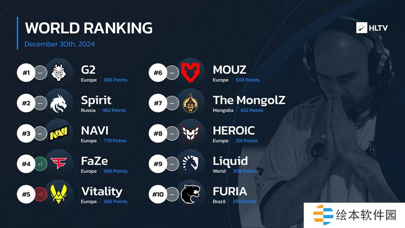 一起看看2024年的最后一期HLTV世界排名吧。