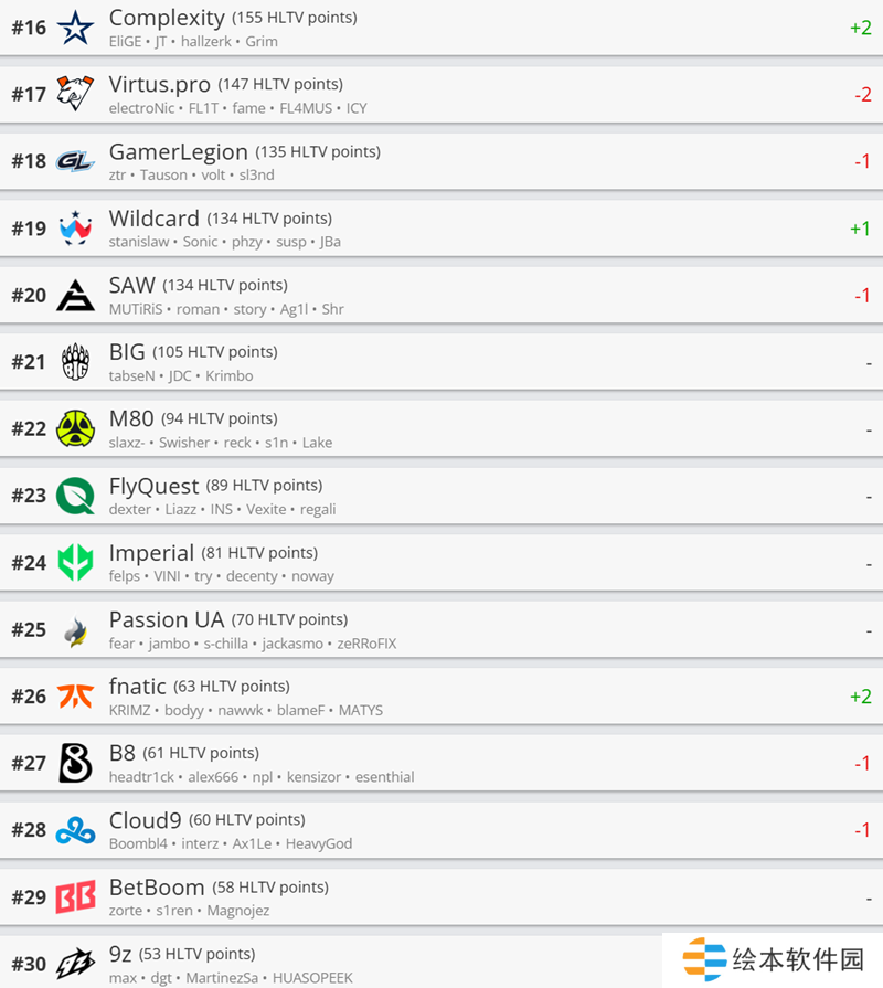 Complexity等队伍排名上升。因