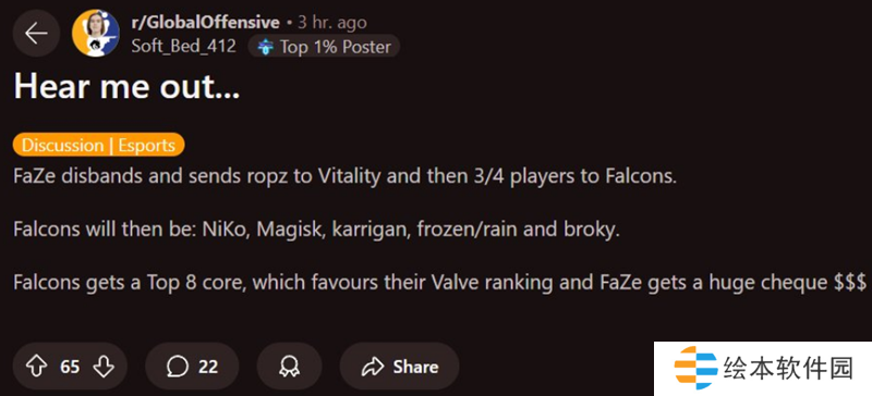 FaZe的选手身价或许比不上最顶级的m0NESY和NiKo,但如此大规模的变动也难得一见。最关键的还是Falcons能出得起钱,而且今年转会期我们被“雷到外焦里嫩”的次数还少么?之前又有多少人预想过ropz会去Vitality、NertZ会去