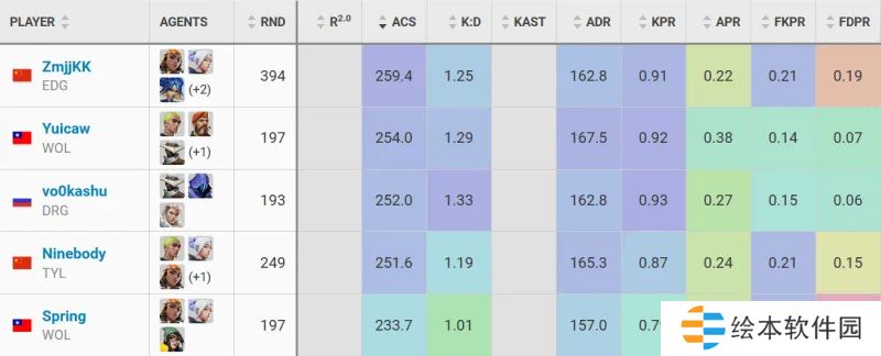 首先,Ninebody作为决斗位,在国内完全也可以说是有着竞争前五水准的选手,他在第二赛段打出场均251.6的ACS表现,排在联赛所有选手的第四位,同时还有这全联盟第二高的165.3的ADR,在其他数据方面也几乎都是名列前茅。枪法能力毋庸置疑,即便是飞将和正义这种对枪法要求很高的枪械,他也曾用它们在联赛当中打出高光的精彩操作,令人印象深刻。