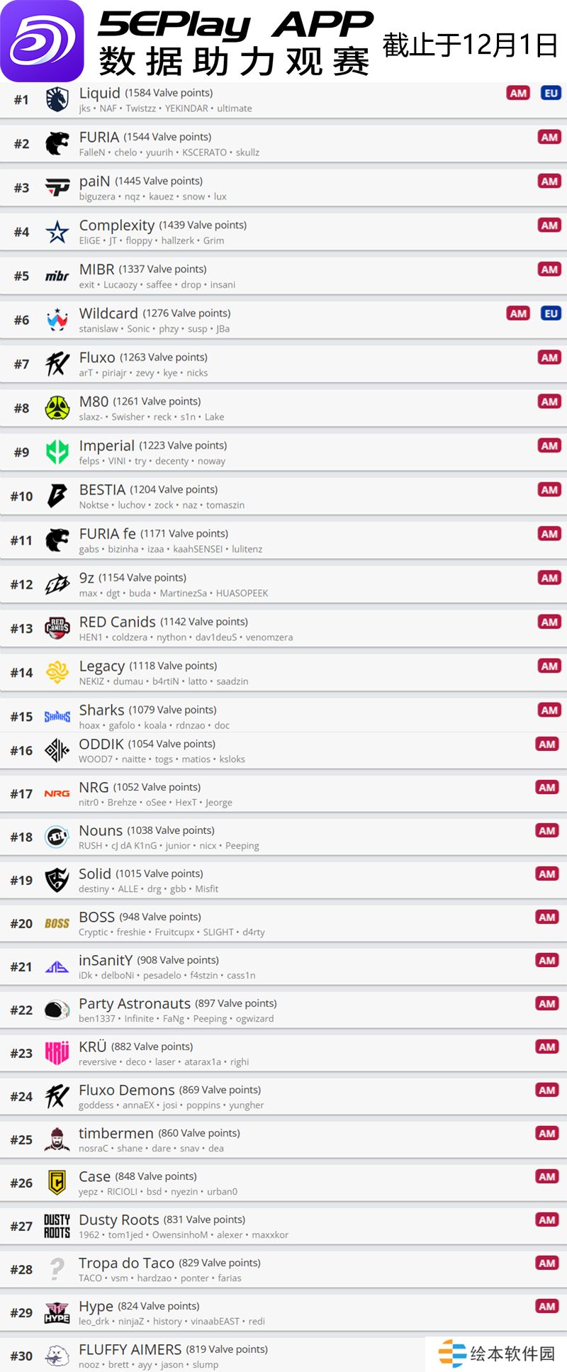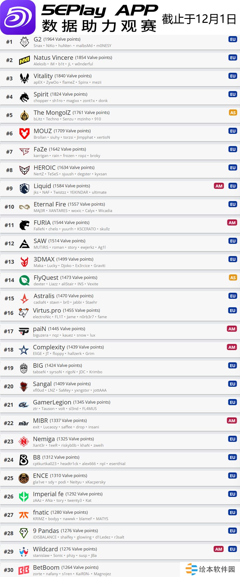 今天V社更新了旗下CS世界排名,这一世界排名会和明年的赛事邀请紧密联系,因此是主办方和战队都必须关注的内容。