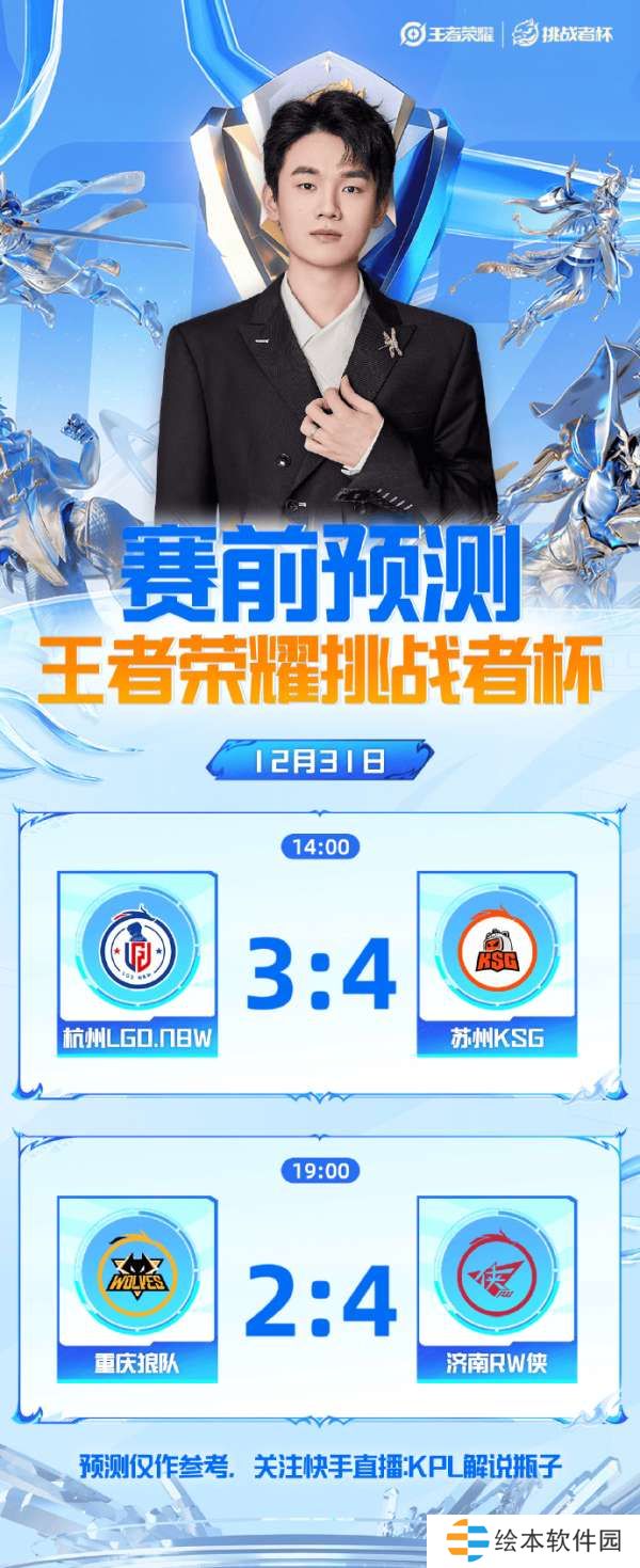 虎扑12月31日讯 瓶子预测今日赛果:KSG巅峰对决战胜LGD,RW侠淘汰狼队!