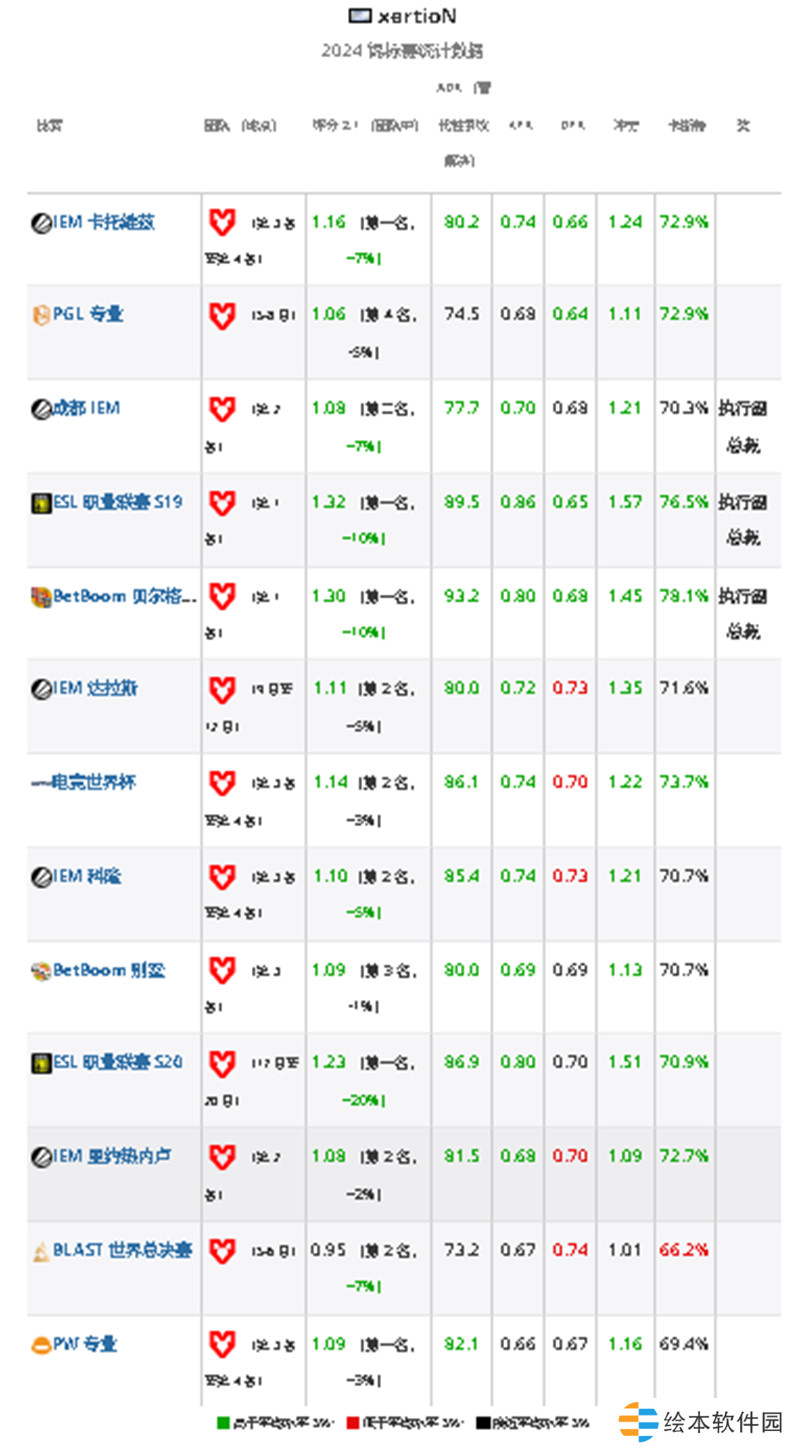 赛事与赛事之间的一致性以及地图与地图之间的一致性(72%高于1.00,TOP5)使他积累了一些出色的原始数据,如1.14的Rating(排名第9)、82.7的 ADR(TOP5)和每局1.00的击杀数(TOP8)。