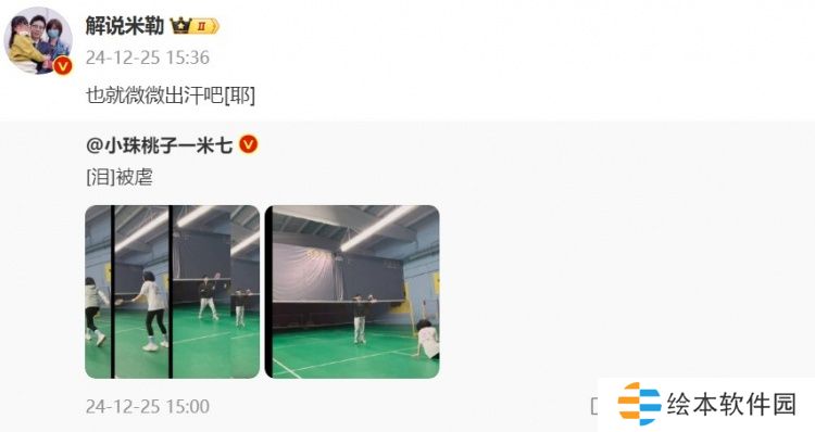 直播吧12月25日讯 LPL官方解说米勒分享与妻子打羽毛球的照片,并配文:也就微微出汗吧