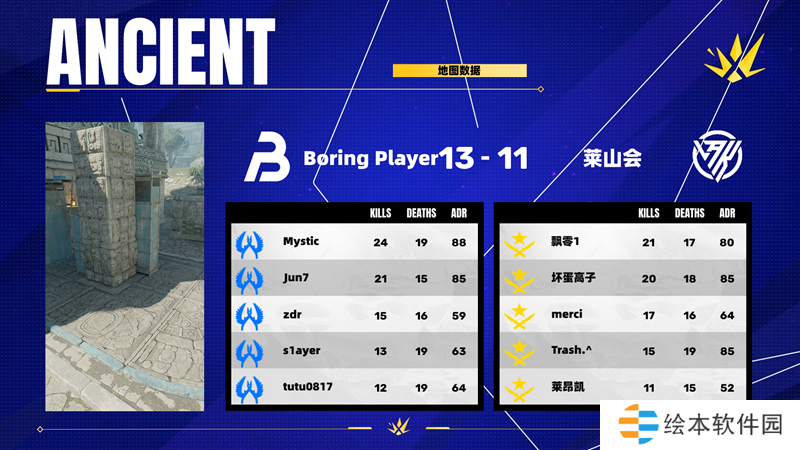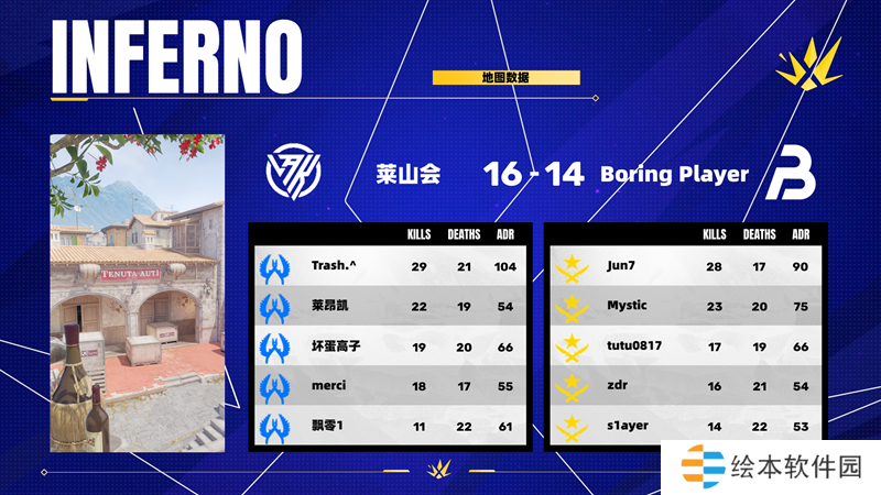 莱山会 2-0 BoringPlayer(Anubis 16-12;Ancient 11-13;Inferno 16-14)