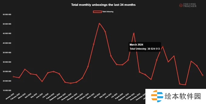 过去34个月CSGO/CS2的开箱次数