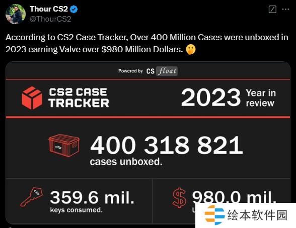 根据去年数据挖掘者Thour CS2的消息,2023年开箱量超过4亿个,为Valve带来了超过9.8亿美元的收入。