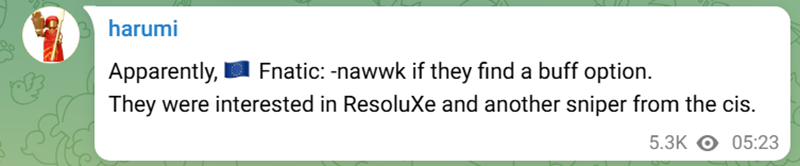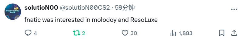 Tim Jonasson | nawwk。fnatic目前对ResoLuxe和另一位独联体狙击手感兴趣。