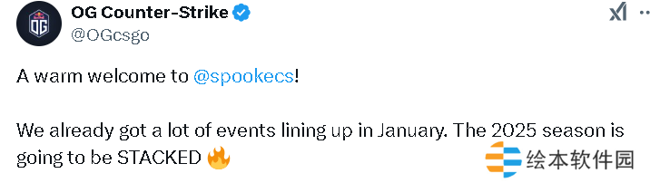 “热烈欢迎spooke!我们在一月份已经安排了许多活动。2025赛季将会非常精彩。”